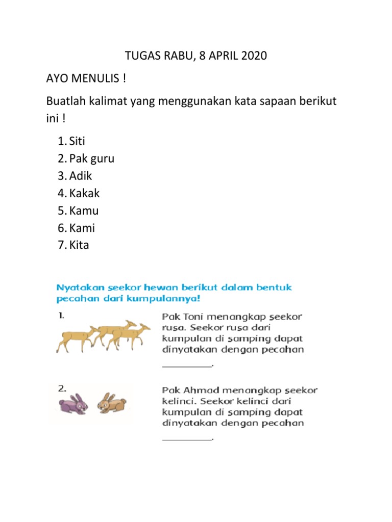| Lihat Buatlah Kalimat Yang Menggunakan Kata Sapaan Berikut Ini Siti Pak Guru Adik Kakak Kamu Kami Kita |